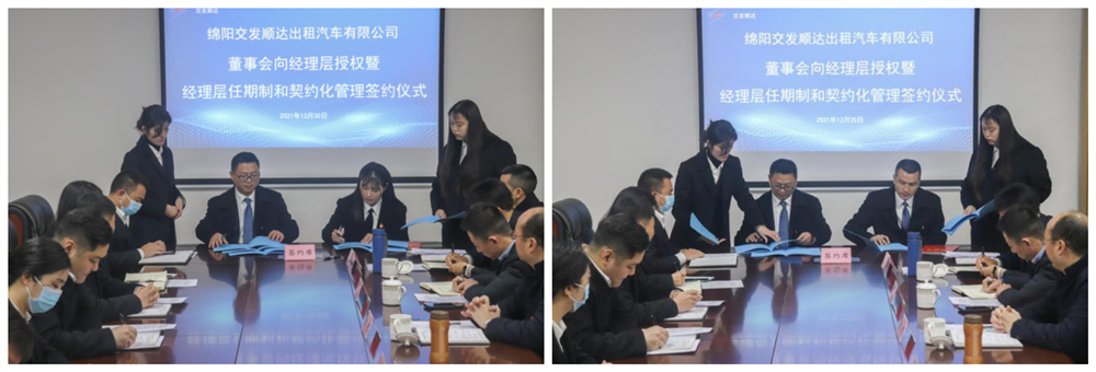 綿陽交發(fā)順達出租汽車有限公司舉行董事會向經(jīng)理層授權(quán)暨經(jīng)理層任期制和契約化管理簽約儀式