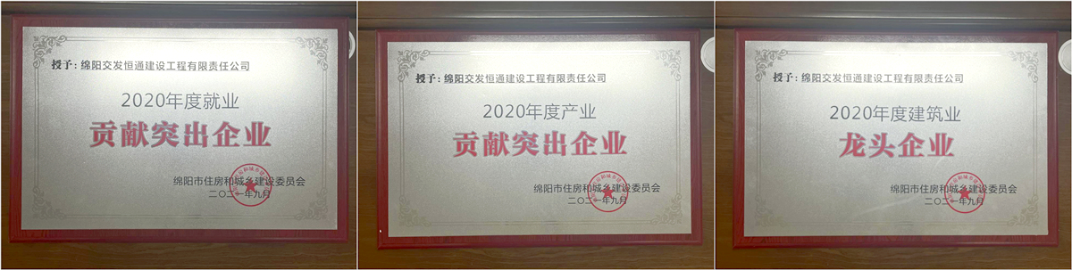 12月17日上午,綿陽市住房和城鄉(xiāng)建設委員會組織召開了全市2020年度建筑業(yè)先進企業(yè)表揚獎勵大會,恒通建工榮獲“年度建筑業(yè)龍頭企業(yè)”、“年度就業(yè)貢獻突出企業(yè)”、“年度產(chǎn)業(yè)貢獻突出企業(yè)”稱號和2021年度綿陽市建筑業(yè)“服務綠卡”企業(yè)證書。