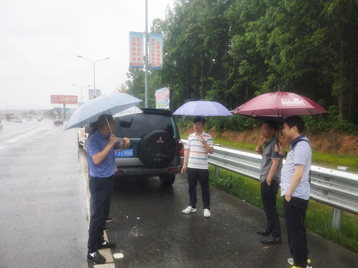 6月16日上午,市公路管理處黨委委員、總工程師吳煥仍,橋隧科科長李衛(wèi)華一行冒雨到綿江路檢查汛期安全工作,路橋公司副總經(jīng)理蘭小松、養(yǎng)護事業(yè)部相關(guān)人員陪同檢查。