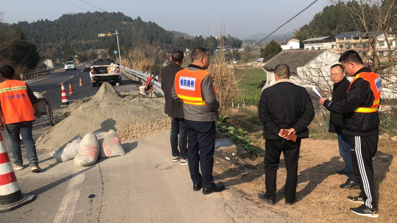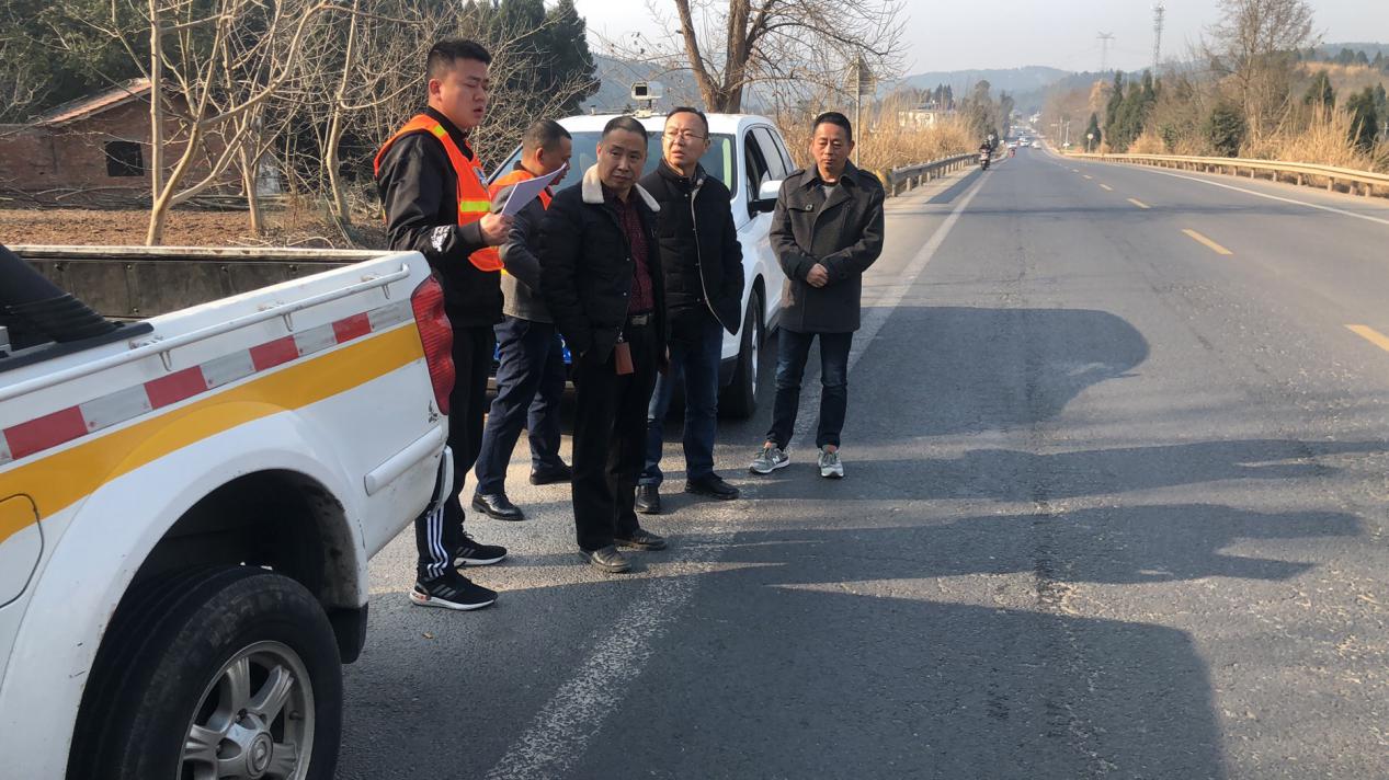 市公管處副處長(zhǎng)孫強(qiáng)一行節(jié)前檢查綿鹽路病害專項(xiàng)處治工程完成情況