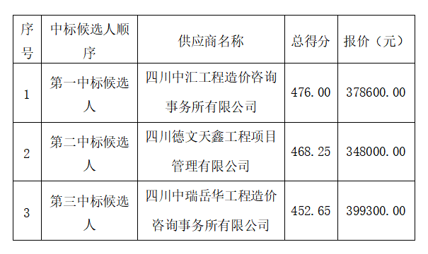 我公司委托四川久安工程管理有限公司代理招標(biāo)的“省道205線綿陽繞城段改線建設(shè)工程(游仙區(qū)段)項(xiàng)目結(jié)算復(fù)核審計(jì)服務(wù)”項(xiàng)目(項(xiàng)目編號(hào):四川久安招[2021]7號(hào))于2021年08月19日13時(shí)30分(北京時(shí)間)進(jìn)行公開招標(biāo),現(xiàn)對(duì)評(píng)審結(jié)果公示如下: ?