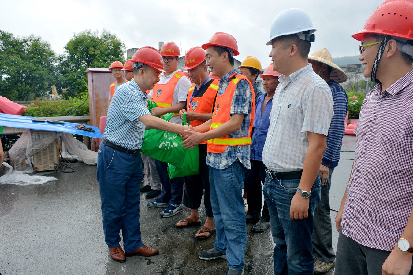 7月18日上午,集團(tuán)黨委副書(shū)記、紀(jì)委書(shū)記、工會(huì)主席田青春帶領(lǐng)相關(guān)工作人員深入國(guó)道G108線魏柳河一號(hào)橋?yàn)?zāi)損搶險(xiǎn)工程現(xiàn)場(chǎng),對(duì)施工人員進(jìn)行慰問(wèn),并送上防暑降溫物品。田青春同志代表集團(tuán)公司向堅(jiān)守在高溫環(huán)境下辛勤工作、無(wú)私奉獻(xiàn)的職工表示衷心感謝和崇高敬意!叮囑施工負(fù)責(zé)人要強(qiáng)化安全作業(yè)意識(shí),合理調(diào)整作業(yè)班次,切實(shí)做好防暑降溫、安全施工和防汛度汛工作,確保施工人員健康和安全。