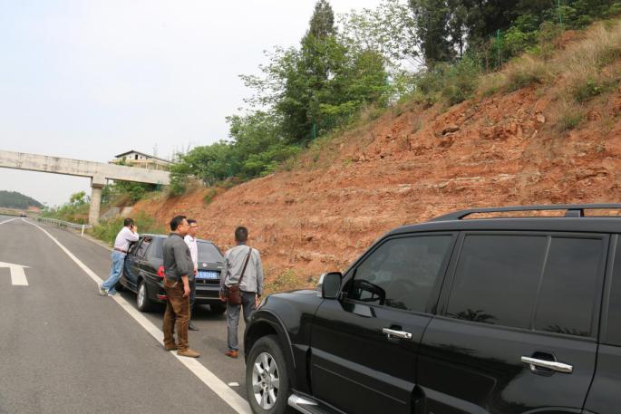 查看繞城高速邊坡隱患現(xiàn)場(chǎng)