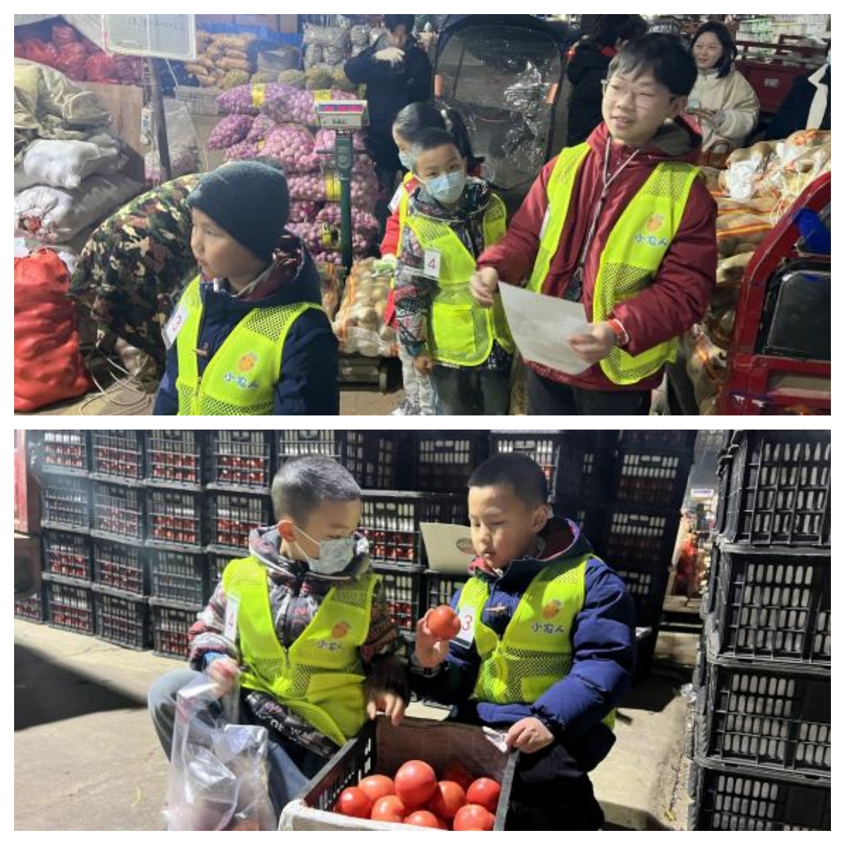 “蔬菜是怎樣從田間到餐桌的?”“不同種類蔬菜應該怎樣選購”。在認真聆聽了市場管理中心李強老師的講解后,小朋友們分成兩組,迅速商定好售賣品種后,立即投入緊張的采購任務中。他們穿梭于繁忙的攤位間,仔細挑選新鮮的蔬菜、討價還價、支付貨款,還自己動手裝袋、搬運。