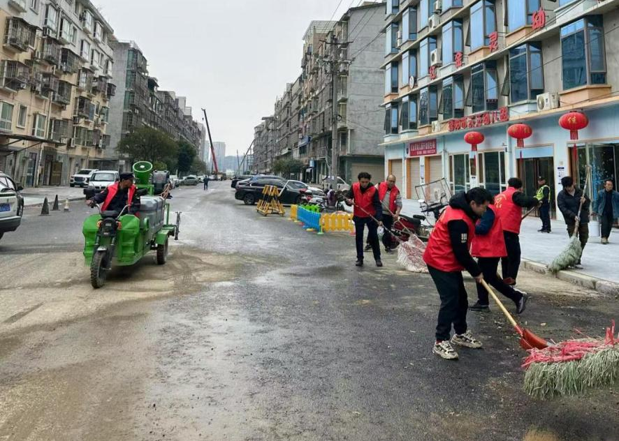 在社區(qū)塌方路段搶修現(xiàn)場,志愿者服務隊迅速響應,科學劃分作業(yè)區(qū)域,采用人機協(xié)同方式展開搶險作業(yè)。工程機械對大型塌方體進行破碎處理后,志愿者們接力完成碎石清運、路面平整等工作,經過2小時連續(xù)奮戰(zhàn),成功打通受阻道路,及時消除交通安全隱患。與此同時,另一組志愿者攜專業(yè)設備對社區(qū)主干道實施“深度美顏”,調配高壓灑水車進行立體化沖洗,配合人工精細化清掃,重點整治隱蔽垃圾、路緣石積塵等衛(wèi)生死角,使近800米道路煥發(fā)新顏、潔凈如新。