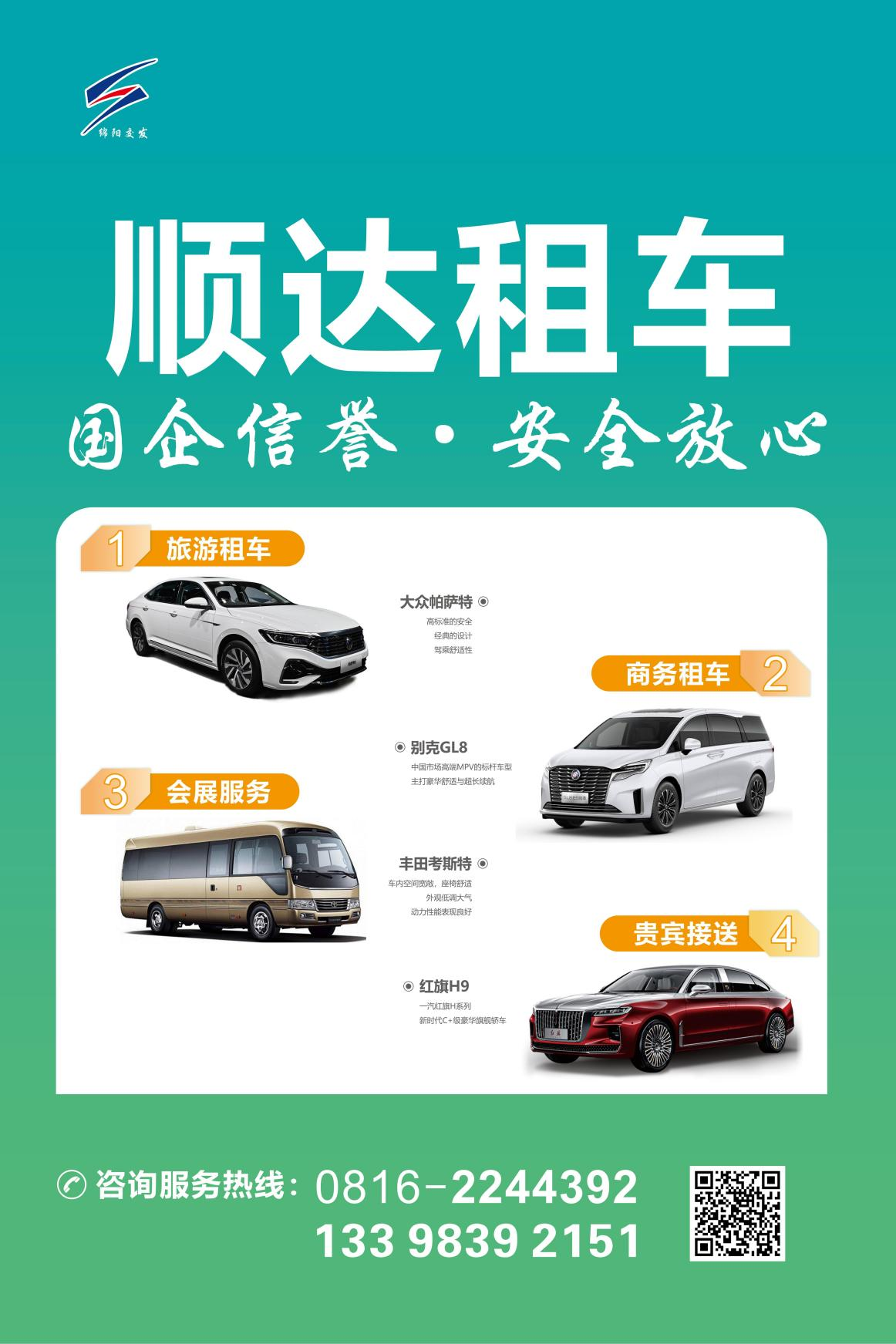 專注本土更專業(yè)。順達(dá)租車是綿陽全資國企,依托本土資源優(yōu)勢可提供“全車型矩陣+全城網(wǎng)絡(luò)”服務(wù),車型覆蓋5座至53座,服務(wù)場景囊括機(jī)場(高鐵)接送、商務(wù)接待、會議通勤、活動會展、企業(yè)班車等。配備持有營運資質(zhì)的專業(yè)司機(jī)團(tuán)隊,駕駛經(jīng)驗豐富,職業(yè)素養(yǎng)高,熟悉綿陽交通、線路、景點、美食等多方面信息,為旅客提供中國唯一科技城正確打開方式。
