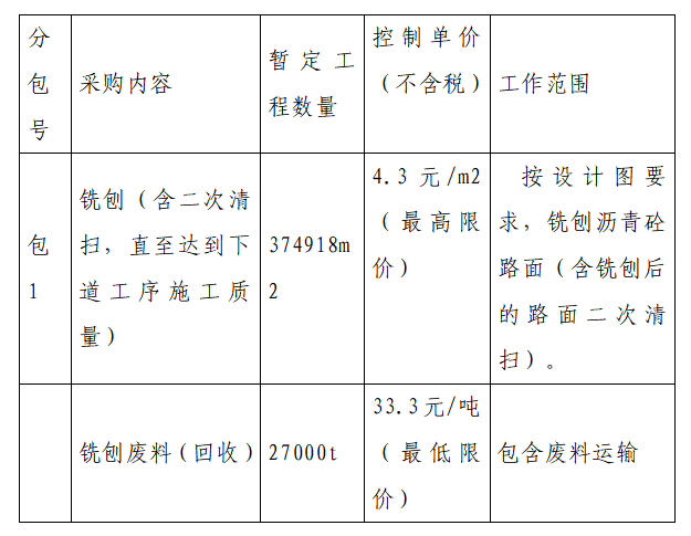 4、競(jìng)得方式:一次報(bào)價(jià),最低報(bào)價(jià)法(其中:銑刨?gòu)U料回收按報(bào)價(jià)最高法),銑刨和廢料回收總價(jià)經(jīng)計(jì)算后,招標(biāo)人綜合發(fā)生成本最低者中標(biāo);若一次報(bào)價(jià)中最低報(bào)價(jià)有相同的,由招標(biāo)人綜合評(píng)判確定成交單位。 ?