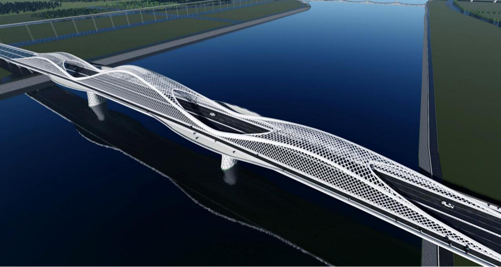 青石路涪江大橋位于科技城新區(qū)北翼,是聯系涪城青義片區(qū)和游仙石馬片區(qū)跨涪江的重要橋梁,定位為重要城市主干道。涪城側接主城區(qū)至江油城區(qū)城市快速路——綿江路,游仙側接南北向城市主干道——科學城大道。項目全長約1.4公里(其中橋長943m),主橋為400m(110m+180m+110m)梁拱組合橋,鋼箱結構,引橋為預應力混凝土連續(xù)梁,涪城側引橋180m(2×40+2×50);游仙側引橋363m(2×40+4 × 30+(30+43+30)+2×30)。采用城市主干路技術標準,雙向六車道,設計時速為60公里/小時,建設內容主要包括道路、橋梁、交安、綠化、照明、管網等。
